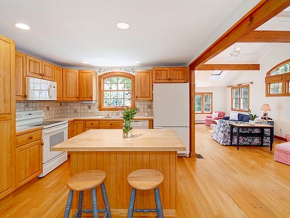 Charming 3 bedroom Cape sited on a lovely level lot with beautiful plantings and bounded by mature trees. Open, sunny floor plan is ideal for formal entertaining as well as everyday casual living. First floor features fireplaced living room, dining area with China cupboard, cook’s kitchen with island, breakfast bar and four burner cooktop, soaring ceiling family room with skylights, bedroom and full bath. Upper level boasts two generously proportioned bedrooms and full bath. Lower level hosts laundry and loads of potential for work shop, exercise, and storage space. Tranquil, private backyard hosts deck, patio and plenty of space to entertain, play and grow. Oversized two car garage.