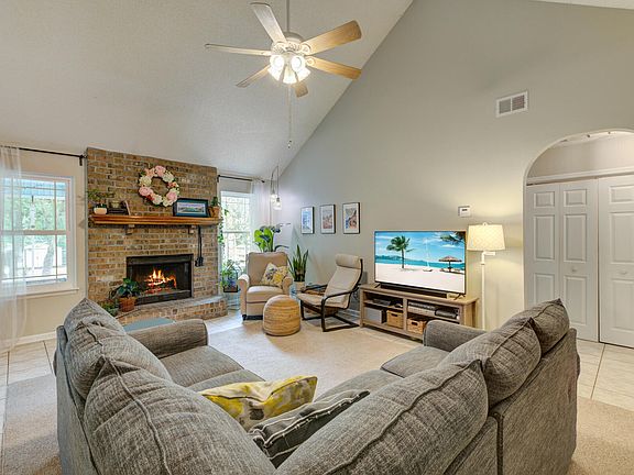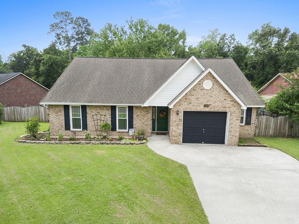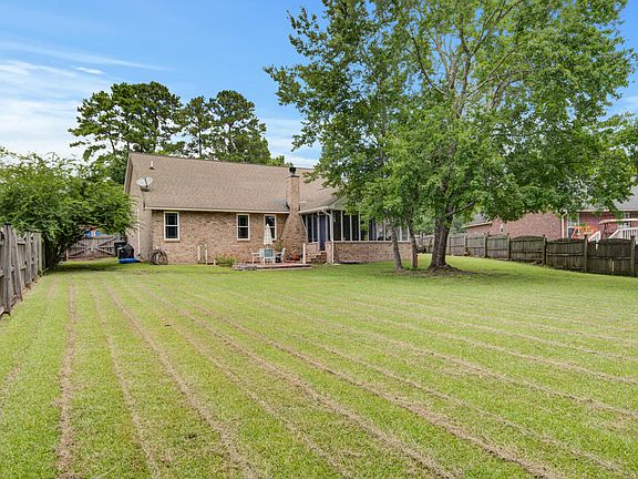 This beautiful home in Goose Creek's Camelot Village Subdivision is a Must-See!! With ALL NEW WINDOWS INSTALLED March 2022 and sitting on OVER 1/3 ACRE you don't want to miss this gem! As you pull up to the home you will immediately notice the large front yard and beautiful brick exterior! The wide driveway accounts for plenty of off street parking. The entryway leads to the large family room with SOARING VAULTED CEILINGS and a brick fireplace and plenty of natural light from the windows and you will love the architectural curved entryways between the living spaces. The family room flows to the dining area and kitchen with glass doors leading to the huge backyard! Just off the back of the home you will find a huge back porch overlooking the large privately fenced back yard. Just a fewsteps away is the extended brick patio perfect for outdoor entertaining and grilling and a fire pit to enjoy on those cooler nights! There is a shed to home all your gardening equipment. Back inside you will find the large Master Bedroom with Vaulted ceilings, sitting room, sizable en-suite bathroom with dual sink vanity and a large soaking tub. There is a dedicated laundry room as well just off the master. The two additional bedrooms that are spacious and bright share another full bathroom. Behind your home is Wannamaker Park with acres upon acres of walking trails, bike paths, summertime fun with the nearby water park, play parks and events. The park behind the home is quiet and will not be built up behind home!! With no HOA and all the space you can imagine this could be your next home!! Book a Showing Today!