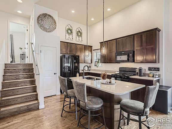 Welcome to an inviting home nestled in a convenient area of Loveland, only a few minutes from Downtown. This stunning residence boasts exceptional upgrades throughout, including a trex deck perfect for enjoying Colorado's beauty, 42" cabinets for ample storage, elegant red oak wood flooring, and luxurious quartz countertops. Step into the vaulted living room flooded with natural light from beautiful windows, creating a warm and welcoming ambiance with custom barnwood shutters. Retreat to the private primary suite with a walk in closet. The unfinished basement offers endless possibilities for future expansion. Additional highlights include a heated 3-car tandem garage, ideal for both vehicles and hobbies, a convenient dog run, and a retractable awning over the deck, perfect for entertaining or relaxing outdoors. This home has been well cared for and is move-in ready, offering a rare opportunity to own a meticulously maintained property in a sought-after location. Don't miss out on making this your new home!