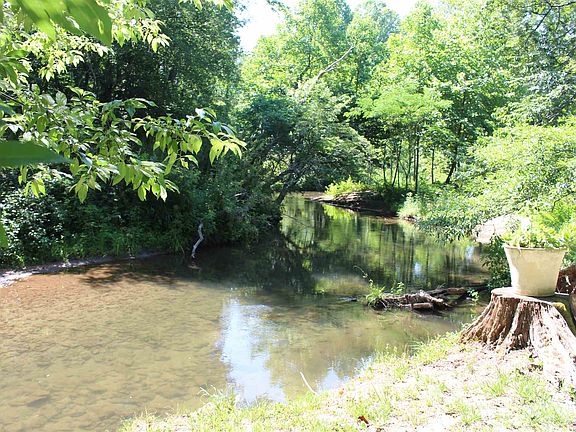 Very neat, well maintained home with long frontage on big creek right outside your door! Sits on 2 flat lots with storage buildings and place to park RV with electricity hook up. Pear tree, grapes, apple tree, and blueberries. 2 BR 1 BA on main level and efficiency apartment on lower level. Covered and open deck to enjoy the sounds and view of the rushing, noisy creek. Carport & workshop. Has everything you need and is very affordable.