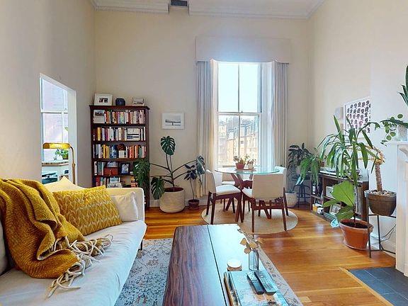 AVAILABLE 9/1. Charming and sun-filled 1-bedroom, 1-bathroom + study loft, ideally situated on the third floor of a well-maintained, brownstone building. This stylish condo boasts soaring ceilings, oversized windows, elegant crown molding, a decorative fireplace, and beautifully refinished hardwood floors. The sleek Calacatta Gold marble bathroom adds a touch of luxury, while the kitchen is fully equipped with a range, dishwasher, disposal, and refrigerator. Additional features include central heat and AC, generous closet space, and an intercom system. Enjoy convenient amenities like a common laundry room, a roof deck with stunning views, and secure bike storage. No pets per condo docs, no smoking. First month, last month, $360 move in/out fee and 1 month broker fee due at lease signing. Exclusively offered by the Haywood Kristiansen Group BHHS Warren Residential.