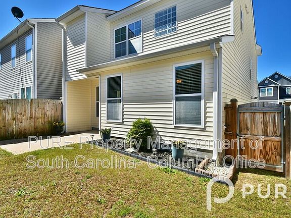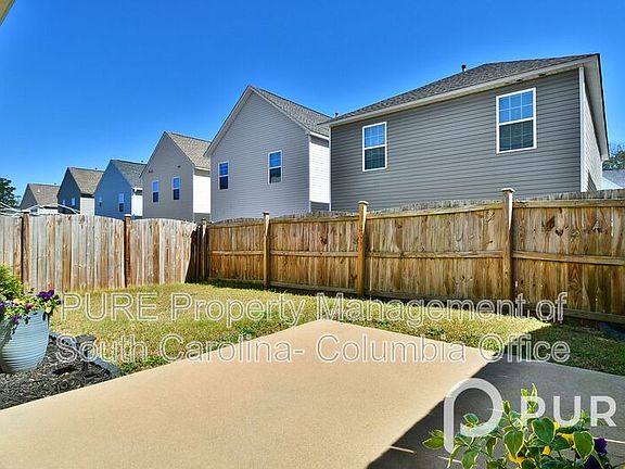 Charming 3 bedroom, 2.5 bath home in the Dawsons Park subdivision in Lexington. Covered front porch and rear porch, 1-car garage, and fenced backyard w/ patio. Inside boasts hardwood flooring, high ceilings, and chair rail molding throughout the main level; granite counter tops in the kitchen and both full baths. Spacious open kitchen off the foyer has a built-in desk workspace and included stainless steel gas range/oven, built-in microwave, dishwasher, and side-by-side refrigerator. Bar counter open to dining area and living room w/ ceiling fan. Half bath and full-sized laundry room off the kitchen. Laundry room w/ pantry and half bathroom off the kitchen. All bedrooms upstairs. Primary bedroom suite has vaulted ceilings, a walk-in closet, and full bathroom w/ double sinks and garden tub and separate shower. Two additional bedrooms w/ walk-in closets and a 2nd full bath. Convenient to Lake Murray, Downtown Lexington amenities, Hwy 378, US-1, and I-20. Lexington 1 schools. Please note: pets must be 25 lbs or less.