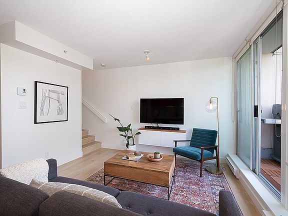 JUST MOVE INTO this concrete two-level city home topped by a rooftop patio at Uno, located in the heart of Mt Pleasant. Built by award-winning Intracorp, this light-filled, modern 2-bed + den / 3-bath home offers plenty of space for living, working from home, and entertaining. Features an openconcept living room/kitchen, a private rooftop terrace with a STUNNING MOUNTAIN VIEW complete with a gas hook up for the fire pit & second balcony. The master bedroom and 2nd bedroom offer privacy on the second floor. Live in the vibrant main st community, close to shops, restaurants, schools, parks, and transit. Includes 1 parking and 1 storage locker. 2 pets allowed and rentals welcome. Showings by Appt.
