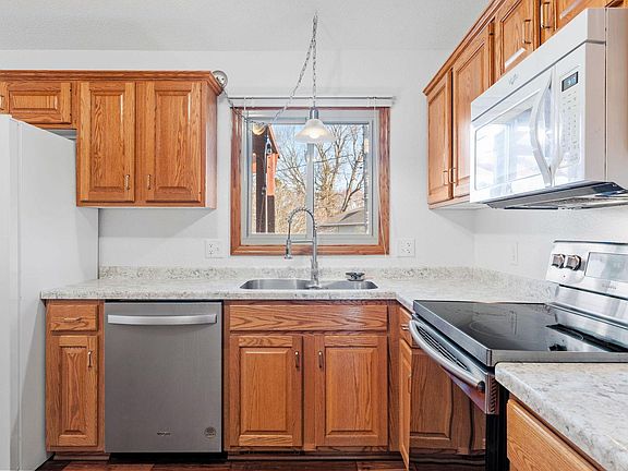 Beautifully updated and well-maintained home in a great location! This charming three-bedroom, two-bathroom home is move-in ready with numerous updates throughout. Enjoy the warmth of the stunning walnut wood flooring and natural light throughout the main floor. The kitchen features a brand-new microwave, dishwasher and stove. The remodeled lower level boasts new laminate flooring and a cozy gas fireplace. Additional updates include new lighting, ceiling fan, window coverings, washing machine with a pedestal and carpet on the stairs. The attached two-car garage comes equipped with a new electric heater and lots of shelving for a perfect workshop. Outside, the steel siding offers durability, and the backyard is an entertainer’s dream with a pergola-covered deck and a storage shed for added convenience. A must-see home with an unbeatable price.