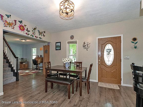 Wonderful porch welcomes you into this lovely well maintained home. Spacious living room with lots of windows makes it light and bright. Slider leads to expansive deck with gazebo. Perfect for relaxing and entertaining. Sharp kitchen with snack bar. All appliances remain. Nice dining area. Adjacent room makes a great office or den. First floor primary bedroom with walk in closet, plus another convenient main floor bedroom. Attractive updated full bath. Second level has two other generous size bedrooms. Wardrobe closets stay with home. Lowerlevel has tons of storage and a newer half bath. Finished area that would make a great family/rec room. Some newer flooring and paint. Beautiful landscaped corner lot. Storage shed for all your outdoor toys. Walking distance to downtown Perry.