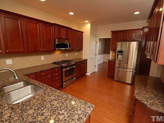 Hurry on this one! Prime West Cary location. Fantastic home w/lots of upgrades and full walk-out basement. Features granite tops, gas range, stainless built-in appliances, breakfast bar, trey ceilings, hrdwd flrs & big bedrms. Thousands in new pull out drawers & closet organizer. Office w/french doors. Basement has guest suite bedroom, WI closet, full bath, family rm wired for surround & Bar/hobby rm. Fenced rear yrd backs to trees. Comm pool w/slide, tennis, basketball & clubhouse!