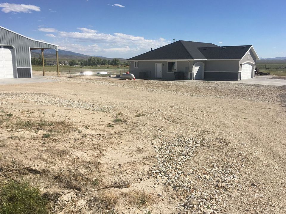 Check out this like new beautifully built beck home, the sunrise model, with a LARGE detached shop. Complete with everything you need plus more, home has extended concrete patio, concrete walk ways around the entire home and from home to shop, water filtration system and soft water system, wood fire place that keeps the entire home warm in the winter months, added counter space in the kitchen, covered back patio, large wood storage shed, a 2400 sq foot insulated shop with 220 v hook ups, two lean two's on each side that are completely covered and also have cement, the entire drive way is graveled, sprinkler system in back to the grass and planters, fenced back yard. This home is a beauty and has SO much to offer!
