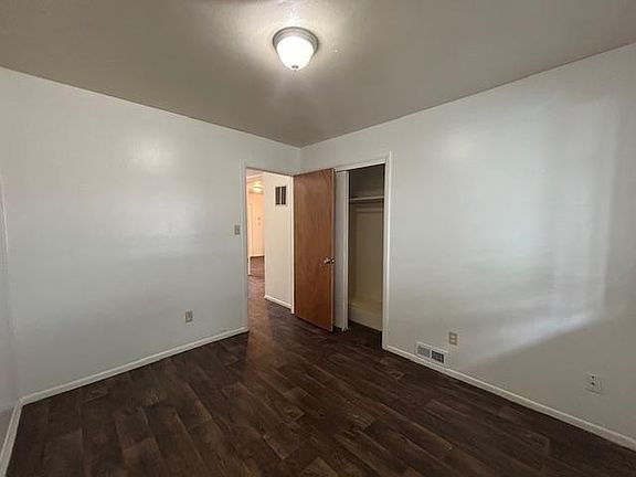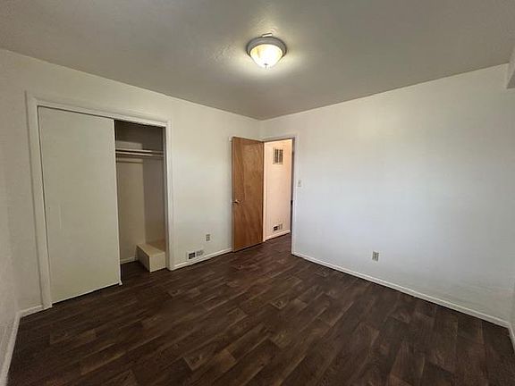 Charming duplex located in a quiet neighborhood near Ft. Carson. Offers 2 bedrooms and 1 full bath. The family room flows into the open kitchen. Walk out to a fully fenced yard with a concrete patio, perfect for relaxing or entertaining. Includes one dedicated driveway parking space plus additional parking in front of the unit. Features a window A/C unit, wood laminate flooring, storage space, and washer and dryer hookups for added convenience. Radon Mitigation System.