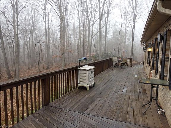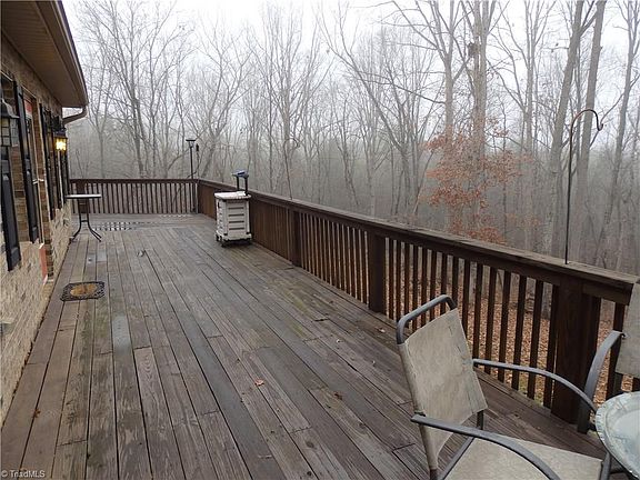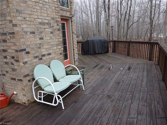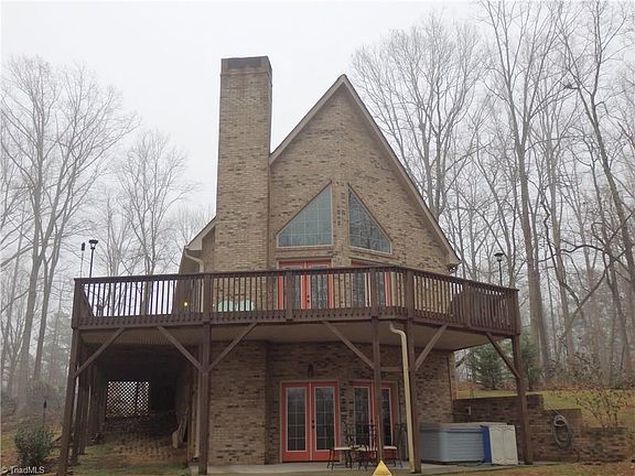 Custom built brick home with 2nd floor loft & full unfinished basement. Eat at bar & wood burning fireplace. Wrap around deck, Walk out patio off basement. 2 bedrooms with 2 full & 2 half baths. Master suite with large custom tile shower & laundry chute. 4.78 acre lot with natural rock formations, lots of landscaping & accent lighting. Metal building w/ separate power meter. All kitchen appliances remain. Basement could easily be finished. Great location with easy Triad commute. Septic permit is 3 bd.