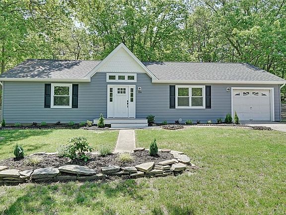 Beautiful updated 3 bedrooms, 2 full bath ranch with a garage, on a large lot that backs to the woods. Perfect for the growing family or for those who want to downsize but want to have some privacy too. Walk into a bright open living area with vaulted ceilings and lots of windows. The updated kitchen is brand new, with Granite countertops, subway tiled back-splash, all new Stainless appliances including a 5-burner stove and Stainless stove hood, a stainless dishwasher and a washer and dryer and tiled floors. The open living room leads to the dining room with all new tiled floors. The split floor-plan means the master bedroom is on one side of the home and the other bedrooms are together on the other side of the home. The master bedroom has a full master bath with walk-in closet and laminate floors. The other two bedrooms have laminate floors and are good-sized. The full bath has tiled floors and a new vanity. All new gas heater, HWH and AC unit. There are two attics