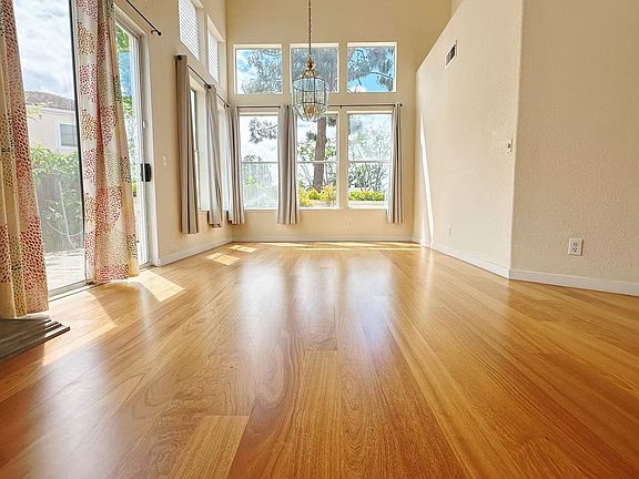 Welcome to this bright and cozy 3-bedroom home in the heart of Costa Brava! Step through the gated front courtyard and into a warm, open space with nearly 20-foot high ceilings and beautiful wood floors on the main level. The layout is perfect for flexible living, with a convenient bedroom and full bath downstairs and two spacious master suites upstairs each featuring a generous bathtub for ultimate relaxation. The main master suite is a true retreat, boasting a spa-like bathroom with a large double-sink vanity, a separate walk-in shower, and a luxurious soaking tub. The extra-large backyard is beautifully landscaped with pavers and mature plants perfect for relaxing or entertaining. Ideally located close to parks, schools, the lagoon trail, golf, and the SF Ferry. Plus, enjoy access to a community pool and park. Come see why this Costa Brava gem feels like home! Renters are responsible for all utilities. No smoking allowed.