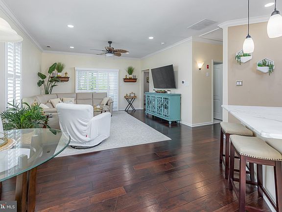 Discover this beautifully upgraded home, designed with an open floor plan and countless modern features that offer comfort and style for years to come. Located in the highly sought-after senior community of The Village Grande at Camelot in Glassboro, NJ, this home features 9ft ceilings, elegant crown molding, and custom plantation shutters throughout. The spacious layout is enhanced by abundant recessed lighting and a large 12x12 patio, perfect for outdoor relaxation. The kitchen features a new quartz countertop with a beveled edge, custom lighting, a breakfast bar, and stainless steel appliances, including a newer refrigerator. Enjoy the convenience of a large sink, striking backsplash, and ample storage. The kitchen flows seamlessly into the living room, which also includes crown molding, recessed lighting, and easy access to the patio, complete with a retractable awning to enjoy those cool autumn evenings. The primary bedroom is your private retreat, with a large walk-in closet, ceiling fan, and recessed lighting, plus an en-suite bathroom featuring a stall shower. The second bedroom also offers crown molding, a ceiling fan, and recessed lighting, perfect for guests or a home office. Additional highlights include a laundry room that leads to an insulated two-car garage, equipped with a mini-split heating and air conditioning system, and extensive shelving and cabinets for all your storage needs. Energy efficiency is a key feature, thanks to a recent energy audit. Upgrades include a sealed attic with new insulation, an attic fan, a high-efficiency water heater, and a hybrid HVAC system, ensuring comfort and lower utility costs. Perfectly located near Route 55, Rowan University, shopping, dining, and just a short drive to Philadelphia and Jersey Shore destinations, this home has it all! Don’t miss your chance—schedule your showing today and experience the best of senior living in Glassboro, NJ!