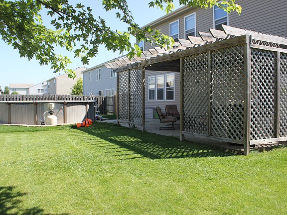 The fenced back yard has a stamped concrete patio with pergola that leads the new above ground POOL.