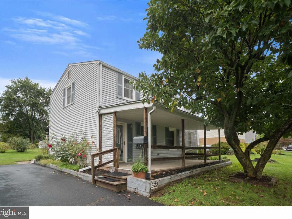 Location, location! This borough single has been lovingly cared for and maintained for many years. The inviting covered front porch overlooks a deep front yard. Enter through an upgraded front door with full glass storm door into a large living room with wood burning fireplace complete with glass doors, marble mantle and ceramic hearth. The formal dining room has a ceiling fan with light. Both rooms have newer laminated flooring over hardwood for ease of care. The bright kitchen has a cooktop stove with large stainless steel hood, stainless sink with goose neck faucet, ceramic tile backsplash and an eat in area which could also be a space for refrigerator. Adjoining room is currently used as refrigerator area and dishwasher(notworking and will be removed) plus washer and dryer and commode room. The utility room houses the newer furnace and has additional storage. Connected is the enclosed porch which currently has large, working chest freezer. The outside entrance leads to a huge covered porch which is connected to a large open concrete patio. Both overlook a very large yard with a shed at the rear of the yard. The second floor has three very spacious bedrooms. Each has a ceiling fan with lights and two have walk in closets. There is hardwood flooring under the carpeting. The hall bath has ceramic tile walls and tub surround, a pedestal sink, upgraded medicine chest, and vanity cabinet. Newer windows, central air, borough location, North Penn Schools are additional features which make this a place you will be happy to call your home.