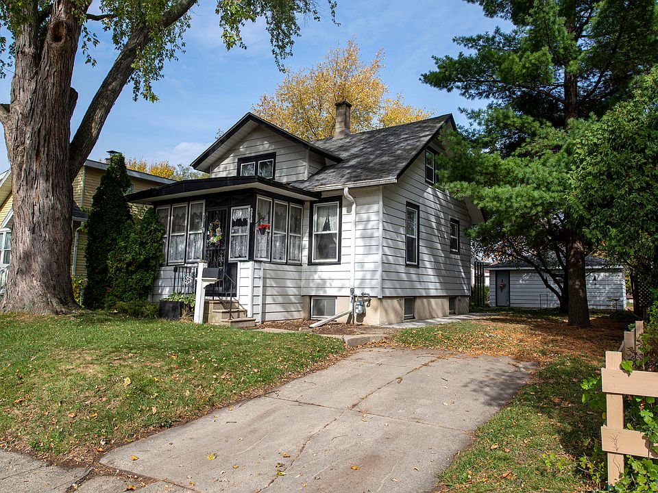 When you are looking for a great location, a cozy home with updated kitchen and bath, come take a look at this 3 bedroom Bungalow. Enclosed front porch is a nice breezy spot to hang out on those hot summer days and takes you to a cozy living room. Paneled main level bedroom, updated bath with tile shower stall, updated step saving kitchen with oak cabinets, back hallway pantry. Upper has 2 spacious bedrooms. Laundry is in full basement. New furnace. Front driveway for parking or a 2.5 car garage off alley. Level backyard and patio is great for hosting those backyard cookouts. Newer windows on main level. Just bring the paint brush and your decorating ideas and move in. This home has been occupied by the same family for the past 50 years and now is looking for a new family.
