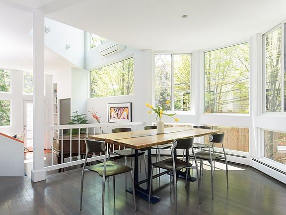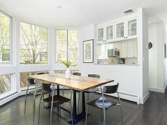 Harvard Square. Close to shops, restaurants. Walk score: 93! Short distance to Red Line to MIT, MGH, Boston! Sunny end-unit set far back from street and nestled behind an elegant 19th-C. house. 2-story living room with fireplace. Spacious dining with bay windows, Direct access to private patio and large fenced, beautifully landscaped garden. Updated kitchen with stainless steel appliances and stone countertops. 4 good-size bedrooms. 3 full baths with radiant heat floors! Principal suite with walk-in closet, private bath, soaring ceilings with skylights, & wall of glass doors to large private treetop deck. Lower-level bedroom/home office suite. Oak floors throughout. Huge replacement windows with lovely views. 4-zone gas-fueled boiler. A/C. Stable association has a healthy reserve of $18k+. Must be owner-occupied. Space, utility, beauty, convenience, and all at a superb location!