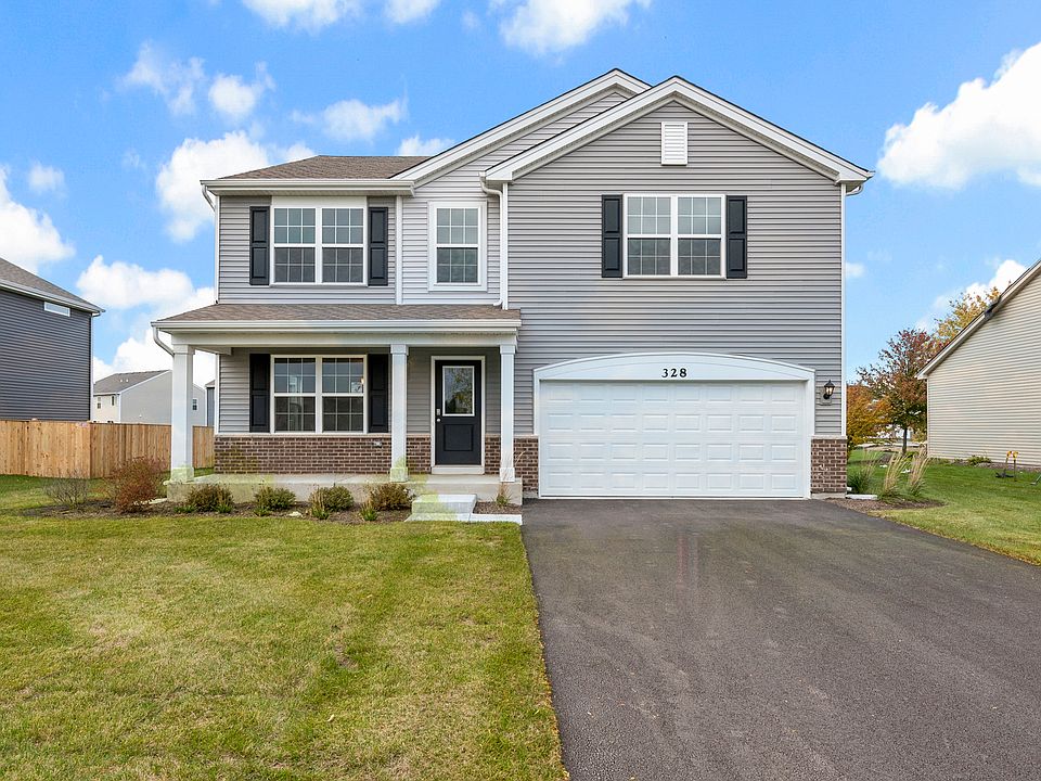 If space is what you are after look no further than this READY NOW #Dream Home! Located in popular #Ashcroft #Place #Oswego, the North Lake model is everything. Over 2800 Sqf, with 4 HUGE bedrooms, 2.5 bathrooms, loft, formal living room/dining room combo, and MASSIVE open concept kitchen and family room. Kitchen is light and bright, with white shaker cabinetry by #Aristokraft. Crown molding accents, #Surface LED lighting package, #Frigidaire stainless steel appliances and #Moen fixtures. No shortage of storage with large island/breakfast bar and walk in pantry. Open concept floor plan, flows effortlessly to the family room, perfect for entertaining. Deluxe 18X15 master suite with massive walk in closet, ceiling fan rough in, & plush carpet. Master bathroom combines design and functionality with dual sink, comfort height vanity, and oversized vanity mirror. Walk in shower is low maintenance with a timeless white surround. Gorgeous glass shower doors and transom window accent elevate this homes designer finishes. Low flow fixtures and #Moen faucets. In bathroom linen closet provides additional storage. Laundry room is conveniently located on the second floor. . #Kwikset Designer hardware in Satin Nickel. #Maxim light fixtures throughout! Just under a quarter acre, this prime lot features professional landscaping an established sod lawn, and adorable covered porch. Located in Ashcroft Place, enjoy all Oswego has to offer with downtown shopping, dining, and Oswego District 308 Schools! **INCLUDED Smart Home Features, High Efficiency Furnace & A/C, Power Vented Hot Water Heater, Underground Utilities, Architectural Shingles with 30 year Manufacturer Warranty, Programmable Thermostat, Low-E Glass Windows*** 1 Year Builder Warranty, 2 Year Mechanical Warranty, 10 Year Structural Warranty** No need to wait for that dream build, 328 Hemlock Lane is complete and ready to go NOW! See it, love it, buy it!