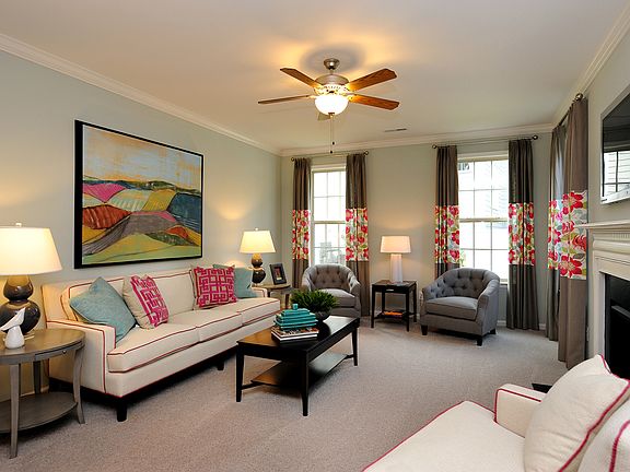Four bedrooms, two-and-one-half baths with formal dining room. Large family room open to the kitchen. Kitchen features large island with bar countertop, pendant lighting, granite and stainless steel appliance package. Butlers pantry that opens to the dining room includes glass doors, granite countertop and lots of cabinets. Formal dining room with coffered ceiling and upgraded flooring. Crown molding throughout the downstairs. Large master suite has two entrances. Incredible master bath with double vanity and his and hers closets. Secondary bedrooms share bath with double vanity too. Laundry room has cabinets with countertop. Ceiling fans in master and great room. Bluetooth hook up and ceiling speakers in the kitchen. 10 x 12 patio in a fenced-in back yard.