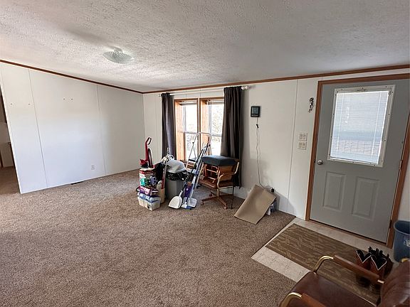 Looking for peace and quiet in a small town with extra space? Look no further, as 328 Kennedy Ave can offer you just that! A well maintained manufactured home on a permanent foundation sits at the end of a street awaits you. Pull into the double car garage and walk on up to this lovely home. featuring a primary bedroom with en suite at one end and 2 additional bedrooms that share a bathroom at the other end. Enjoy the open concept kitchen and dining room that flows in into 1 of 2 living room spaces. in addition, there is a flow through office with built in desk and cabinets. Stepping out onto the beautiful newly built deck you can take in the peace and quiet of your unobstructed view. With .77 acres there is plenty of room for an additional shed or garden. The lawn and trees are well groomed adding to the beauty of this special property. This is a must see if you are looking for small town living.