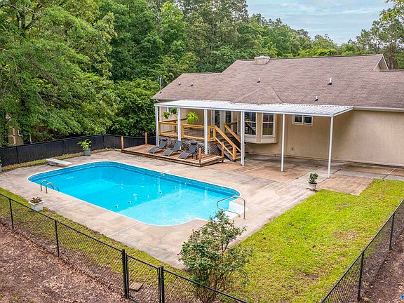 BACK ON THE MARKET AT NO FAULT OF THE SELLERS. This amazing home in Nabors estates has so much to offer. 2 Master Bedrooms, one on the main level and one downstairs, living space w/wood burning fp, Kitchen, dining room, office/study/or playroom. Downstairs could be a perfect area for in-laws or adult children with 2 secondary bedrooms and a jack/jill bath and a second primary bedroom, laundry and an additional Maintenace garage. Entertain outdoors by the pool while watching the sunset in the distance. 2 large metal workshops, metal carport and an additional new storage building. freshly painted, new LVP installed all on 4 acres!! get it before its gone again!!