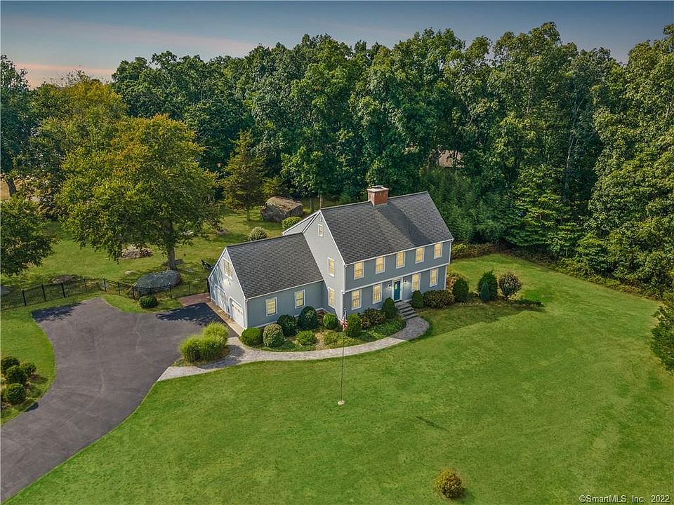 Situated on an expansive corner lot in the quiet Landons Way neighborhood and protected by Land Trust to the east and west, this traditional Colonial Saltbox is desirably located just minutes from highway, train, and air hubs while maintaining the tranquil and historic charm of Guilford. Swim or boat in nearby Long Island Sound or dine and browse in the area’s fine restaurants and quaint shops. Staying at home is another appealing possibility as this home’s picturesque, professionally manicured, level 1.9 acre lot invites you to enjoy the scenery. Moving indoors on the main level, two living spaces flank the entryway, offering a home office or sitting room option and a living room complete with cozy fireplace. The Kitchen boasts counter seating and a breakfast nook, granite counters, stainless steel appliances, a Wolf dual fuel range, and custom cabinetry. The adjacent dining room is perfect for larger, more formal occasions. Sliders off the Kitchen open to a generously-sized deck made of Brazilian cumaru hardwood for maintenance-free, outdoor living. Upstairs, hardwood floors run throughout. The spacious primary bedroom with a roomy walk-in closet, additional flex space and a fully a renovated, private en suite features a luxurious soaking tub. Three more generously sized bedrooms share a full bathroom. On the lower level, the walkout basement offers endless possibilities for finishing. This serene and special property gives you everything you need and all you could want.