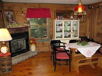 This rustic log cabin is on 3 acres in a country private setting. It's square footage includes an upstairs complete with bonus room. It also has a screened in porch!