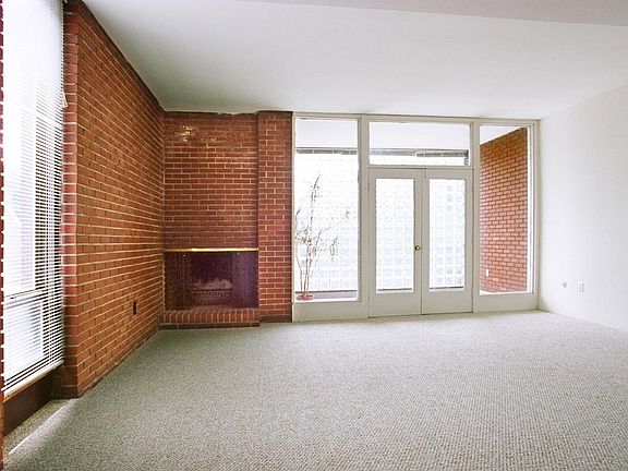 Second-floor residence located in a contemporary apartment building with wood-burning fireplaces and exposed brick in living room and bedroom; wall-to-wall carpet; separate living and dining areas; central air conditioning; modern kitchen with refrigerator, range, and dishwasher; washer and dryer in apartment; private storage lockers in building; off-street parking available for an additional monthly fee. Resident is responsible for gas and electric. Off-street, uncovered parking: $50.00/month.