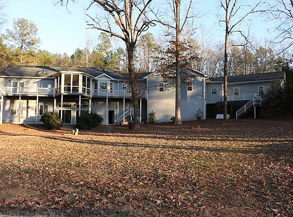 Spectacular 5 bedroom, 3 1/2 bath, waterfront home that features 2 levels of living space. Upstairs features large kitchen with remote skylight, eat in breakfast area, large great room with gas log fireplace, large dining room, 2-3 bedrooms , 2 1/2 baths and utility room. The master bedroom is located on the main level and has a walk in ceramic shower with seat, remote skylight, walk in closet, and deck area to enjoy the view. Off of the Great room a screened in porch perfect for your morning coffee to enjoy the tranquility facing a water view. Lower level has a second kitchen, large great room, full bath, 2 bedrooms, office area, This home also has a 2 car garage, 24x24 garage/ shop with roll up doors, and a storage area made up of concrete and steel perfect for a storm room , additional storage, or an additional workshop. The front of the home is stucco and stacked stone with a concrete circular drive. The back yard is huge and perfect for entertaining. A 62 foot dock with a boat slip is also included with this magnificent home.