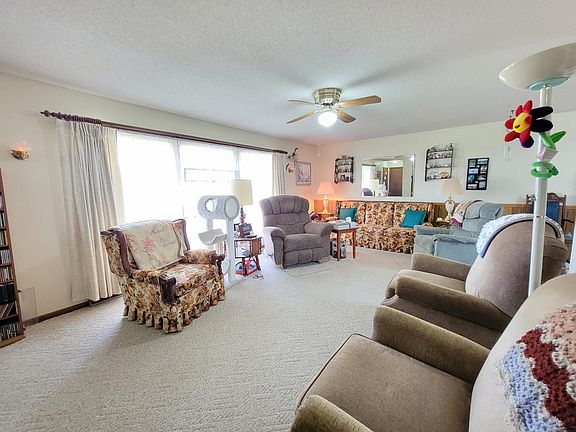 Spacious Ranch home on edge of Wykoff with country views offer a wonderful open floor plan with large windows to enjoy the views. 4 bedrooms, 2 baths on main floor plus large basement with bath, laundry, shop, storage and flexible space. Attached large 2 car garage and great yard with mature trees.