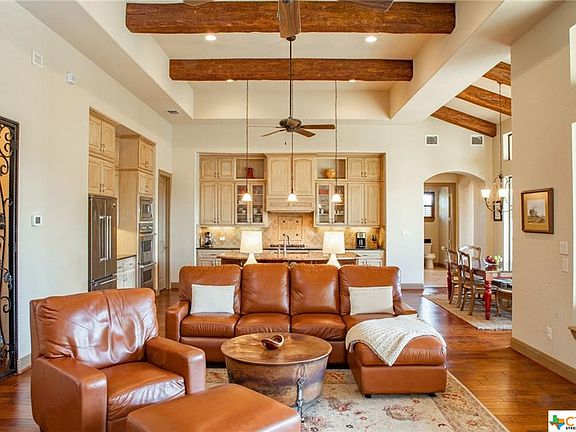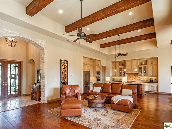 Inviting, luxurious house nestled amongst oak trees on 1.08 acres in Copper Ridge. Open floor plan w/scenic views. Family Room w/beautiful hardwood floors, rock fireplace & surround sound. Gourmet kitchen w/Viking appliances. Great for entertaining inside & outside. Enjoy your evenings watching the sunset from the spacious covered back patio w/outdoor kitchen. This home backs up to a ranch providing privacy, and the front yard is equipped w/outdoor lighting to illuminate the front of the house at night.