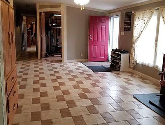 3 bedroom, 2 bathroom manufactured home sitting on 7.94 acres. Gorgeous views. Quiet country setting with brand new front porch, brand new flooring in both rooms, master bedroom is carpeted. Pellet burning stove as well. Huge barn with stalls and 2 rooms as well.