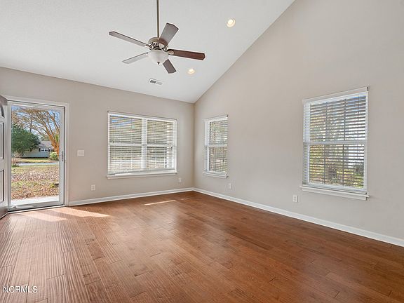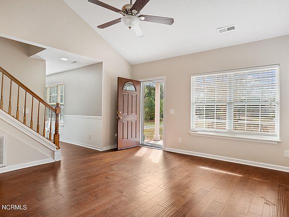 Welcome to 328 Masters Lane! A charming 3 bedroom, 2.5 bath brick home located in Greenway Plantation, with NO HOA! Interior features include a large primary suite on the main level with vaulted ceilings and a large walk-in closet and ensuite. An additional guest room and full bath are also located downstairs along with a beautiful sunroom off the back of the home, allowing in tons of natural light! The eat- in kitchen is cozy and features plenty of cabinet space, granite countertops, and a nice- sized pantry. Upstairs you will find another bedroom with two closets and a huge bonus/flex space, and a half bath. Step outside and enjoy your large private lot equipped with a fenced in back yard for your fur babies! The location is fantastic... in close proximity to Kiwanis Park, and a short drive to the public boat launch out to the ICW! Also, located in the Topsail School District and a 15 minute drive to Surf City/ Topsail Beach!