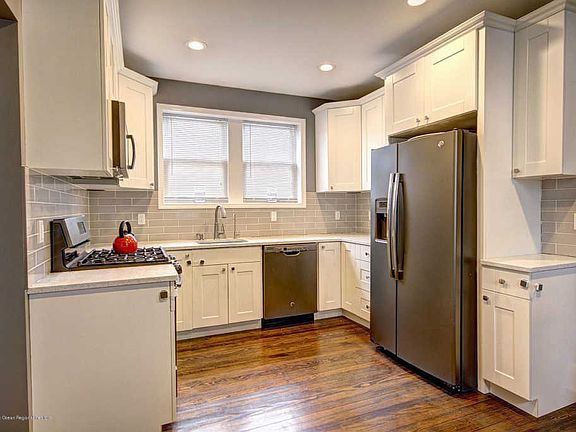 Beautiful renovated large colonial home with 4 bedrooms, 2 full baths and one half bath. Gorgeous kitchen with new appliances leading into a dinning and family room. Second floor has three bedrooms and a full bathroom. Third floor has a master bedroom with sitting area and full bathroom. Upgraded electrical system, newer windows, roof, upgraded plumbing, new doors. 2 car detached garage, full basement for lots of storage, and RainSoft water softener connected throughout the entire house! Backyard has an awning and is enclosed with a vinyl fence.