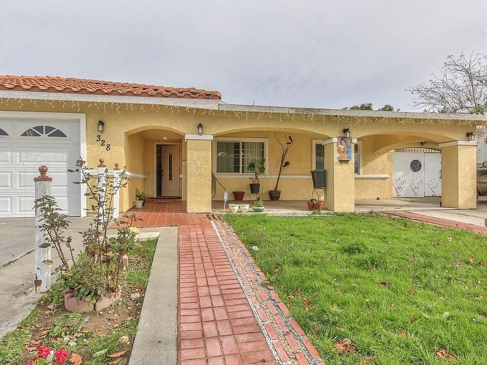 You don't want to miss this one! Updated tile roof and stucco in the exterior. Tile throughout the property, kitchen features granite counter tops, open area between kitchen and living room. The living room features a wood burning fireplace perfect for those cold days in the area. Two car garage and both bathrooms have stall showers. The exterior has a large low maintenance area and extra storage in the back.