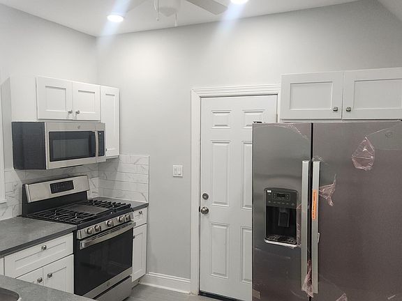 This lovely and spacious porch-front home features new updates, a spacious open floor plan, Central Air & Heat. Beautiful kitchen with granite countertops and stainless steel appliances, including built in microwave and dishwasher. Three (3) nice size bedrooms all with ceiling fans. Main bathroom fully renovated. Finished basement with bathroom w/shower and washer and dryer hook up. Off Street parking and and driveway parking in rear of property.
