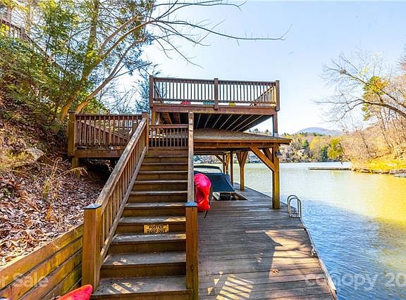Escape to this Lake Lure estate. This home is more than just a waterfront lake house. You'll enjoy gated property with multiple entries, 6+ parking spots, a fenced in backyard, a spacious front yard overlooking the Blue Ridge Mountains, a veranda perfect for al fresco dining or even outdoor grilling! A newly built luxury retaining wall & new landscaping encloses the front yard offering privacy & serenity, especially in summer months. A private stairwell takes you down to your 2-story covered boat house with a diving platform, electric boat lift, & docking space for multiple boats. This home has 4 bedrooms & 3 full bathrooms with the master on the main floor. A fully finished basement with a large rec area for games or additional beds. New HVAC as well as new paint in basement. 2nd floor balcony was renovated in 2019. Don't miss this opportunity to own one of the only lakefront homes on Lake Lure with almost an acre of land! *fantastic rental history* Fully Painted Exterior in 2021