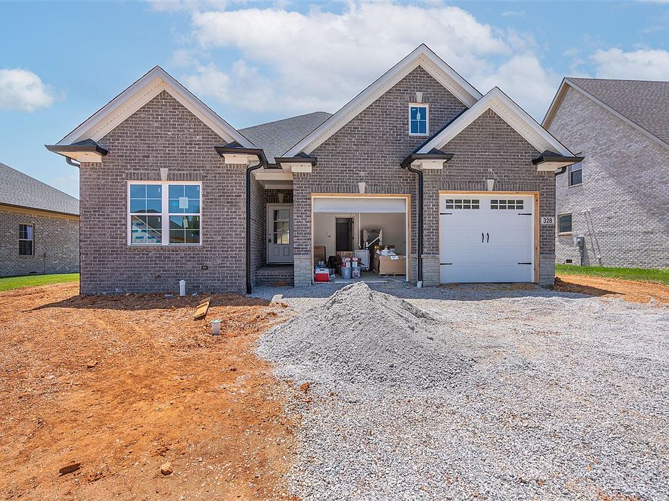 Welcome to 328 Olympia, a stunning brick home located in the desirable Carter Crossings neighborhood. This residence is beautifully appointed with modern finishes, including quartz countertops throughout and LVP flooring, with carpet in the bedrooms for added comfort. The split floor plan provides privacy and functionality, while the gas fireplace with shiplap accents creates a cozy and stylish focal point in the living area. The large kitchen offers plenty of cabinet space, perfect for storage and meal prep, and the guest bathroom features a tiled tub shower combo. Convenience is key with a drop zone off the laundry room, ideal for organizing daily essentials. Step outside to enjoy the concrete covered back patio, perfect for outdoor relaxation. Entire yard has an irrigation system installed!!