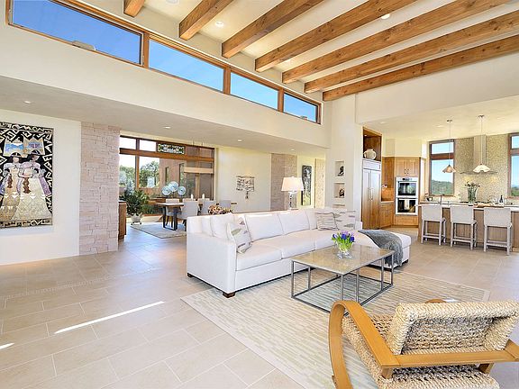Set on one of the premier home sites in all of Monte Sereno, this Will Prull built one-level contemporary home features enormous views of the Sangre de Cristo's, Badlands, and the Jemez mountains. Beautifully designed by Craig Hoopes, there are many unexpected custom features that adorn this home - like a roof top deck with a hot tub, an oversized portal with outdoor grill/kitchen area and large living space, and interior courtyard with water feature, and more. High ceilings and an open floor plan characterize the main rooms, while the master suite is a true respite and sanctuary space. Pawprint Trail is the quietest part of Monte Sereno, and the end of the cul-de-sac location adds to the privacy and buffer from surrounding homes. Thoughtful features like motorized blinds, cork flooring in the kitchen area, and oversized windows to maximize views exemplify some of the detail elements that abound in this Monte Sereno Classic!