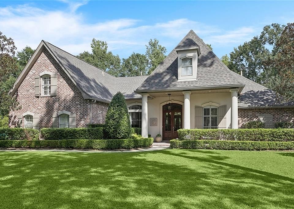 Elegant travertine flooringShaded by oak treesExpansive lotVersatile flex spaceNatural stone countertopsRich oak flooringCustom kitchen