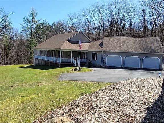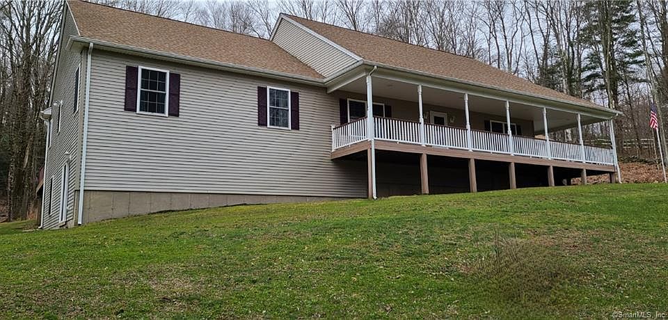 Lovely spacious ranch situated on a private tranquil 3.04 acre lot. Stretch out and relax on either of the front or back decks, sit and enjoy the firepit while making memories. Spacious open floor plan includes large family/living room, eat-in kitchen, formal dining room currently being used as an office. Oversized 3-car garage with loads of space to store your toys. There are 2 garage door openers, and220 electric in garage. Walk-out Basement could be finished to add more living space. Close to UCONN