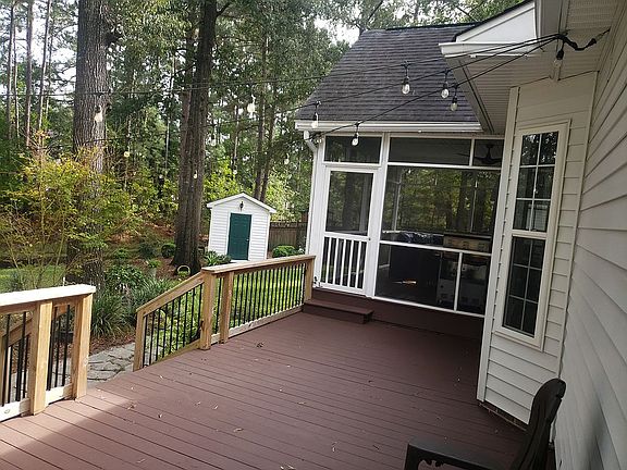 This beautiful home in Pine Forest Country Club has been lovingly maintained and it's pride of ownership shows. Located on a private lot with an amazing view from the large deck or the spacious screened porch. This home features an open floor plan with soaring vaulted ceilings, a split floor plan with master on one side and guest rooms on the other. The master suite features a tray ceiling, a small sitting area, en suite bathroom with separate soaking tub, shower and a walk in closet. The living room features a very pronounced gas fireplace with a blower and a custom built in TV area with built in bookshelves. Double doors that open to the updated screened porch and a small storage shed at the rear corner of the backyard. The large deck is perfect during the day with the elevated tree canopy and amazing at night with the swag lighting over the deck. The kitchen features hardwood floors that flow from the front entrance through the dining room to the breakfast nook overlooking the backyard. Appliances are all stainless and include a smooth cooktop stove, dishwasher,