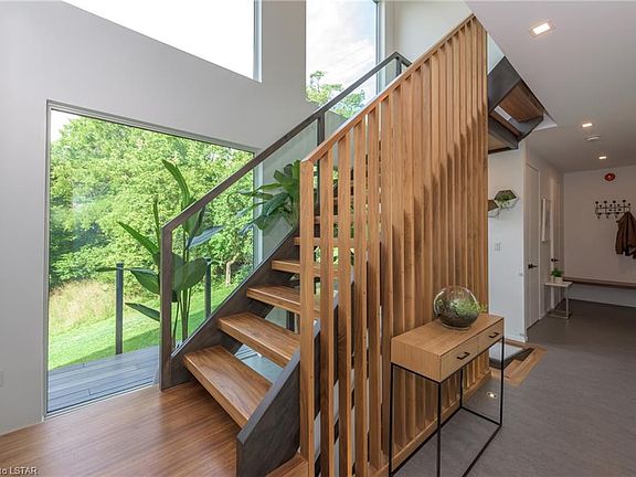 Ultimate luxury in the Forest City. Modern treehouse living in the lush canopy just minutes from downtown! Exciting architecture & design elements. Free standing walnut wall of closets at entry. Open concept great room segues into show-stopping kitchen w/ it's combination of crisp white cabinetry, quartz surfaces & rich walnut detailing. Spectacular windows take in tree-top vistas all around. 4 bedroom main house w/ double garage & fully finished walk out PLUS 967 sq ft guest house ideal for extended family, nanny, home office or income potential perched above separate triple car garage w/ divided 3rd bay. Floating walnut staircase leads to breathtaking 763 sq ft Master Retreat encompassed by huge windows & flooded with natural light. Master enjoys private covered balcony. Ensuite showcases glass/tile steam shower w/ "invisible-ceiling" skylight while stand alone tub seemingly floats against the leafy backdrop. Wrap around composite deck w/glass railing. Zoned for secondary dwelling.