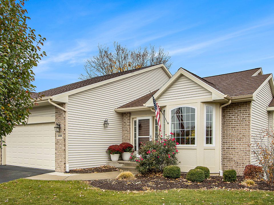 Fantastic opportunity to own an end unit condo in a serene and private gated community neighborhood. With 3 bedrooms and 2.5 baths this ranch style home is sure to please. Built in 2015 the open concept main floor is perfect for entertaining. The kitchen features granite counters, center-island, breakfast bar, stainless steel appliances, and pantry. The spacious living room has a light and airy feel thanks to the vaulted ceilings and bright windows. Looking for a place to unwind? The sunroom has a door to the deck which overlooks the yard. The primary suite has a tray ceiling with a walk in closet. Main floor laundry and office with french door access round out the main floor. Heading downstairs to the daylight basement you'll find 2 bedrooms and plenty of functional storage space. Come see more and schedule a showing today!