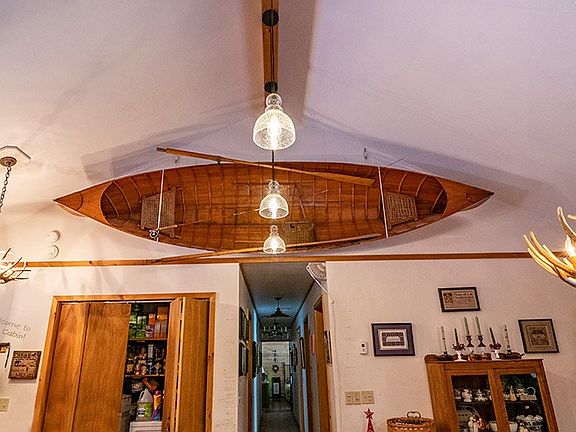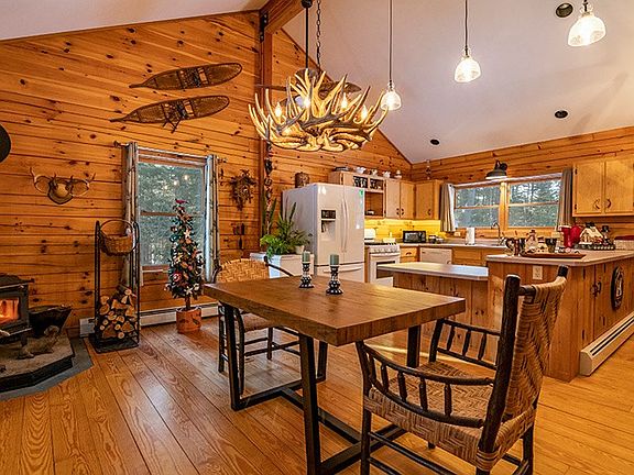 "Peaceful Pines Cabin", an Adirondack home entered through a meandering, Pine tree lined drive to the quaint one-story cabin. The front porch leads to the open main room which greets you with warmth and an abundance of light. Both a wood burning and additional propane stove makes this home easy to heat. This 81/2 acre property and cabin is all one floor living and features a beautiful birch and cedar trimmed primary bedroom. There are two more additional bedrooms with built-ins. The back deck leads you to numerous trails and to the left of the cabin is a very large unfinished garage ready for your touches. The property is secluded and the cabin is nestled by white pines, birch and maple trees. Make time to see this wonderful property aptly named "Peaceful Pines Cabin".