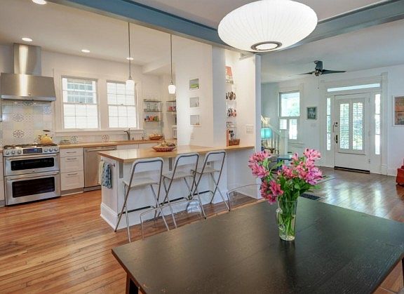 Accepted contract 10/3/15 with 12 day contingency. Will show for Backups. The combination of its open layout, with the juxtaposing modern design and original elements is truly outstanding. Architects, artists, and design aficionados will applaud this one. On the first floor is the eat in kitchen, complete with a dining area, bar, homework area, and pantry.The made in Modo tile backsplash, butcher block counters, lighting choices, and cookbook cubbies are amazing. The family room is complete with a wall of custom bookshelves and an entertainment center. This home also has a hard to find first floor master bedroom with great closet space. They laundry has also been relocated to the first floor in a perfect spot. Upstairs is a 2nd FULL bath, a large den, and a sweet nursery. This area could easily be turned in to a 2nd floor master and can be functionally used as a 3 BR, but was not counted as such with layout/closets considered. Out back is a great deck, a flat, fenced yard, and a 2.5 car garage, with a 2nd floor loft (see measurements on layout). FIRST showing Sunday, 2-4 pm.