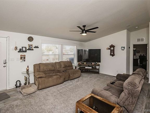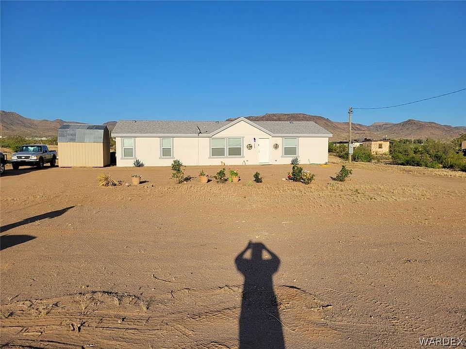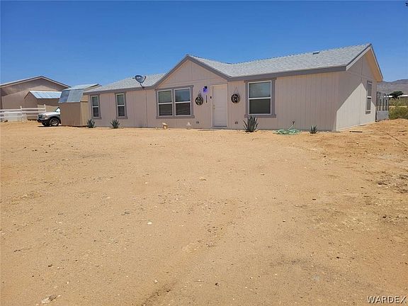 Beautiful built and set in March of 2023 and includes 6 year home warranty. This spectacular acre of property is located just a short distance from highway 68, with views of the Black mountains and Cerbat mountains all around. Master suite has a large walk in tile shower, dual vanity and private water closet, very spacious! Open floor plan with kitchen island, rear pantry in the large laundry room and built in china hutch. 20-30 minutes into Kingman, Bullhead City or Laughlin, this gorgeous desert gem is not too close and not too far from anything. Did we mention the home was brand new in March? What is better than brand new? A home that is almost brand new but now has window treatments and a great set of matching kitchen appliances that stay! (excludes deep freezers, washer and dryer) Large shed at the rear of the property, with plenty of room to add garages or work shops, RV and toy parking, horses or other outdoor preferences.