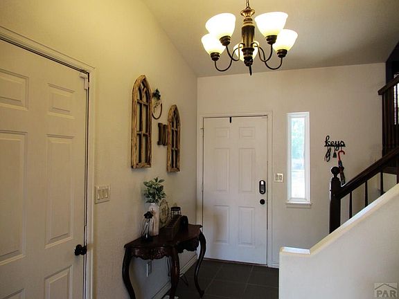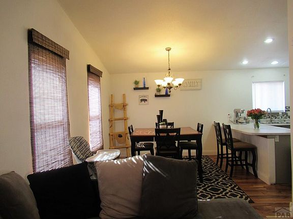 Beautiful bi-level home in Pueblo West! This home features an open concept design on the main level with an updated kitchen with a large peninsula. The spacious master bedroom has a large walk-in closet. An addition family room on the lower level is a great place to relax. The covered back patio and horse shoe pits make this home ideal for entertaining outside.