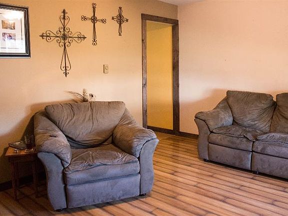 This 2 bedroom 1 bath home would be a great starter home. It feature large bedrooms,large living room area and a nice eat in kitchen/dining area which opens to a large deck in a quiet back yard. It also features an oversized 1 car heated garage. It has newer siding and metal roof.