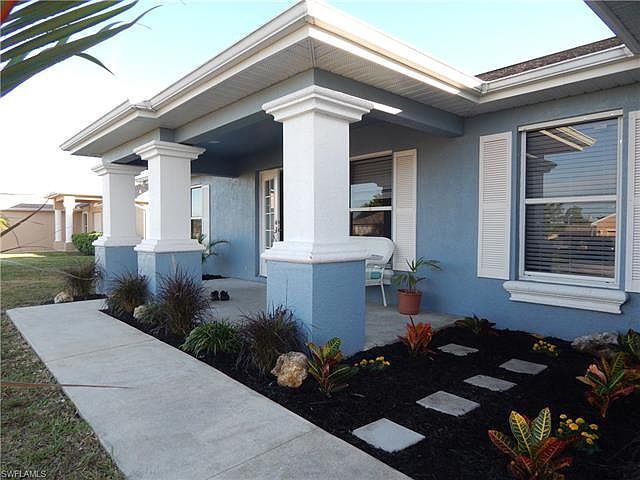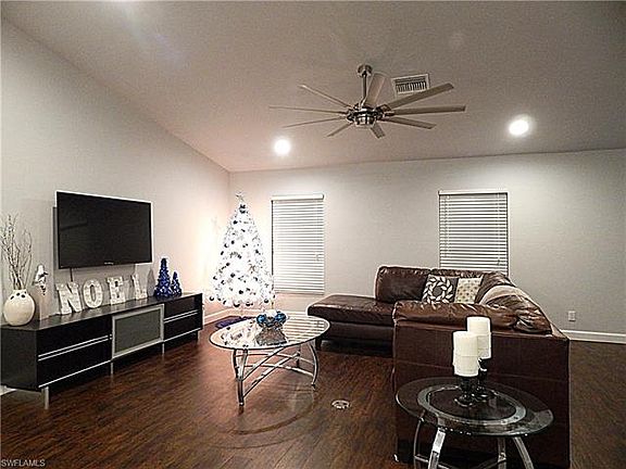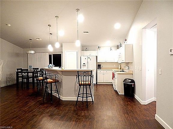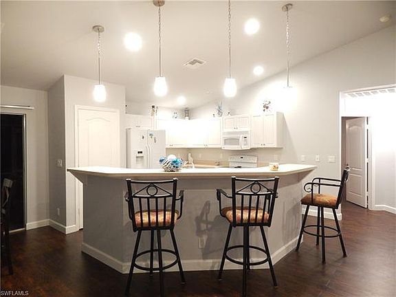 Experience the meaning of Move in condition as you walk into your beautifully maintained new home. This house features open concept living space with vaulted ceilings. 3 Bedrooms, with Den/Office or 4th Bedroom. 2 full bathrooms, 2 car garage laundry room and 1777 Sq. Ft of living space. Freshly painted with tall baseboards and water resistant flooring. Your open concept kitchen, perfect for entertaining or keeping an eye on the kids. High top bar island for additional seating and pantry. Upgraded brushed nickle lighting fixtures, tamper resistant Decora outlets and switches. New outlets with GFI outlets up to code throughout your new home. Jack & Jill Style Bathroom connects the Den and the 2 guest bedrooms. Master bathroom features a garden tub separate shower and his and hers sinks. Master is large enough for a King bed and great closet space. Hurricane Impact Widows In-Wall Pest Control System. Open Front Porch and Screened In Back Lanai. Desirable Family neighborhood conveniently close to park shopping and schools. On City water and sewer. Call today, this house is a must see and ready for you.