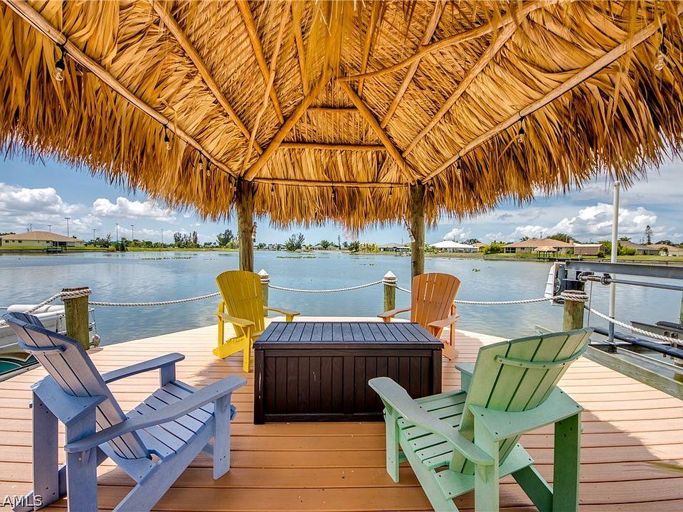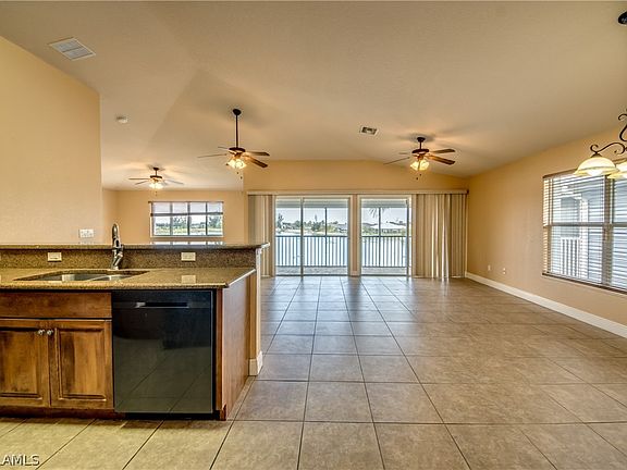 Beautiful Wide Water Views from this 3 bedroom condo that includes your own boat dock and one car garage. Enjoy boating, kayaking or fishing on this chain of lakes and fresh water canals. Relax in the hot tub or heated pool that includes a swim up bar while entertaining your friends or neighbors. This unit was built in 2006 and has over 1700 square feet of living area. It's soaring ceilings and open plan make it feel even larger. It has tile floors, granite countertops and wood cabinets. Great views from all the living areas including the kitchen and dining areas. It also has a screened balcony so you can enjoy the breezes and sunsets! The owners suite is spacious with a large walk in closet. The master bath has dual sinks and a shower. This is a corner end unit with lots of windows and natural light. Inside laundry for full size washer and dryer and lots of storage at an affordable price. Conveniently located near shopping, great restaurants, health care and schools. Quick access to Ft. Myers, Airports, Burnt Store Road, Punta Gorda Airports, I-75, Pine Island and Great Fishing!!! Easy to Show!